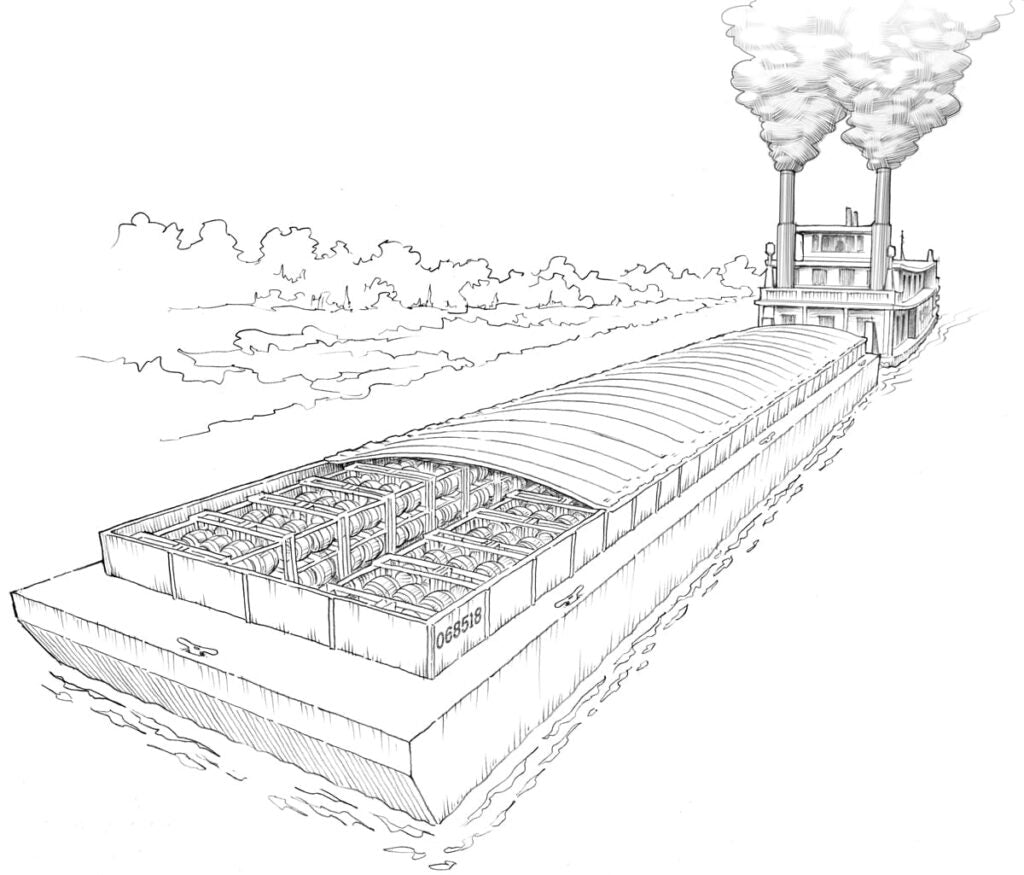 O.H. Ingram River Aged is the only whiskey in the world that is aged inside floating barrelhouses on the Mississippi River. Along the banks of Columbus, KY, our spirits spend their entire lives exposed to the river’s constant motion and intense climate. The drastic rise and fall of the river forces a more intense interaction between the spirit and oak. High humidity on the river keeps the barrels and sugars moist to stave off evaporation and heighten flavor. This is why we say “Mellowed on the Mississippi.